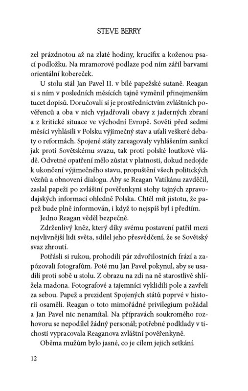 "Na Sibiři se scházejí dva muži z protilehlých stran barikády. Měla to být pragmatická schůzka, ale skončila střelbou. A těžce zraněný Cotton Malone teď už ví, že se před Alexandrem Zorinem musí mít opravdu na pozoru.