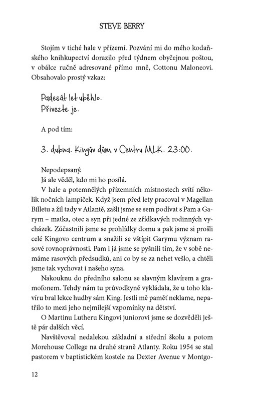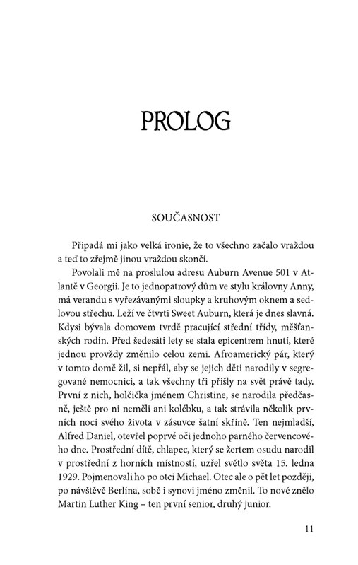"Když v dubnu roku 1968 třeskl výstřel a Martin Luther King zůstal ležet v tratolišti krve, Amerika se otřásla v základech. Ovšem teprve nyní, o půlstoletí později, začínají vycházet najevo okolnosti, které tuto zlomovou událost staví do zcela jiného světla, než jak ji popisuje historie.