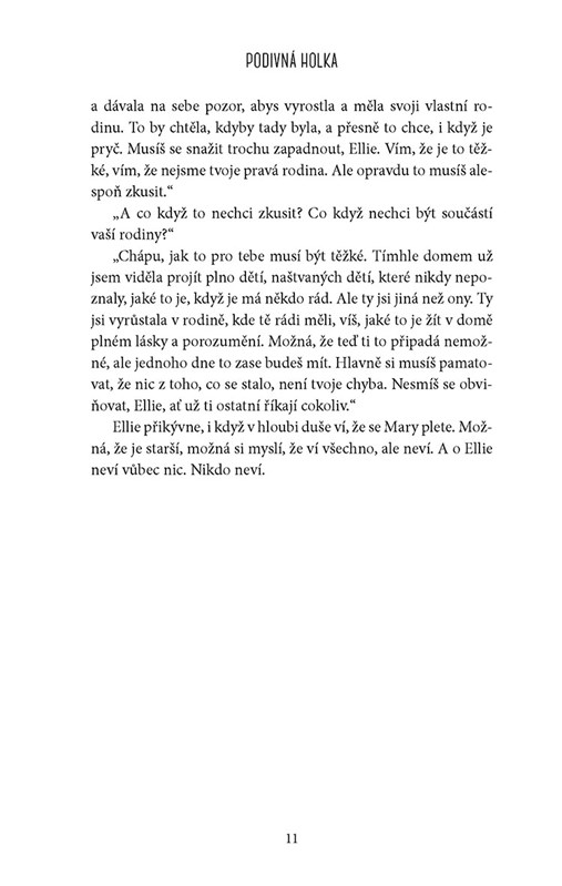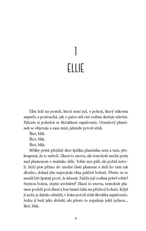 Jenomže Elliini náhradní rodiče a učitelé se už začínají bát. Když se dívka rozčílí, dějí se zlé věci. A postupně také Imogen začíná zjišťovat, že čím hlouběji proniká do dívčiny duše, tím ohroženěji se sama cítí..."