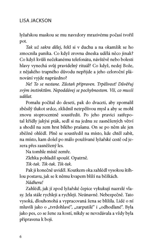 Na vrahově seznamu je šest osob. Když si prohlíží jejich fotky, zrychlí se mu dech. Šest tváří, šest vinných. První z nich už zemřel, další přijdou brzy na řadu. V seznamu jsou také policistky Alvarezová a Pescoliová. Vrah je pozorně sleduje a v duchu si přehrává ten slastný okamžik, kdy bude konečně moct stisknout spoušť a další bezvládné tělo padne do rudnoucího sněhu...