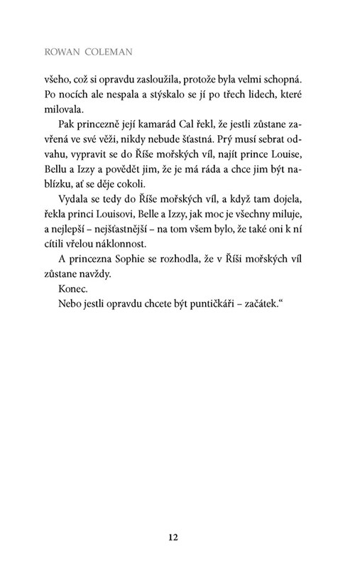 Sophie váhá jedině nad tím, jestli má do svého života přijmout i Louise. K tomu, aby se stala matkou ze dne na den, ji donutily okolnosti. Ale založit ze dne na den rodinu, to už je otázka volby. A Sophie váhá: miloval by ji Louis i za jiných okolností? Nevidí v ní jen jakousi náplast za zemřelou ženu? A dokáže ona sama žít s vědomím, že její případné partnerské štěstí stojí na smrti kamarádky? Spousta otázek, na které Sophie hledá odpovědi... Bude je umět nalézt?"