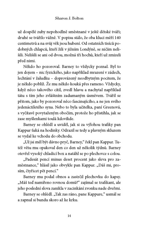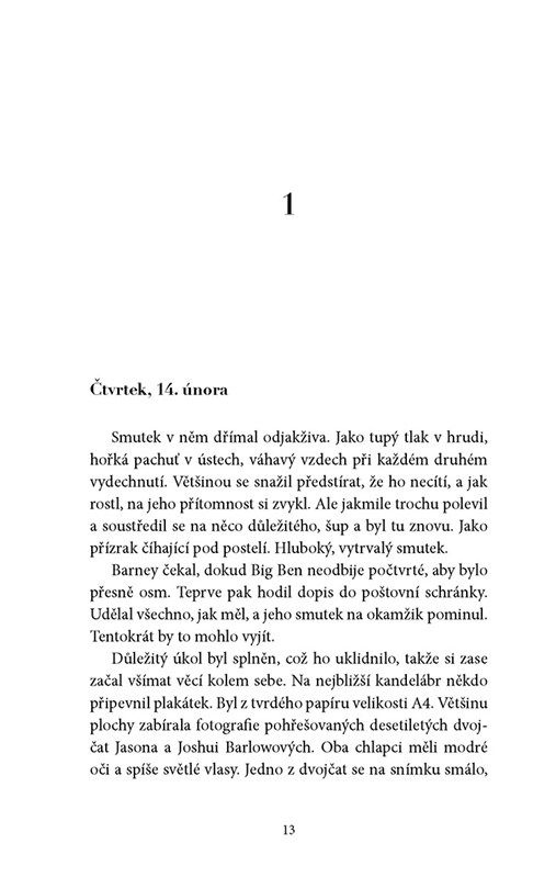 Ví to každý, ví to tedy i jedenáctiletý Barney: momentálně nejobávanější londýnský vrah brzy udeří znovu. Obětí bude další chlapec přibližně v jeho věku. Bezkrevné tělo bude nalezeno na břehu Temže. Vyšetřovatelé se nebudou mít čeho chytit, protože nenaleznou žádné stopy. Ze stejného důvodu nedokážou ani vydedukovat, kdy vrah udeří zas.