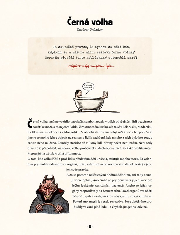 Možná si myslíte, že města jsou docela nudná místa, kde se můžete potkat pouze s nerudnými a věčně spěchajícími spoluobčany. Kdepak hledat v nich tajemné a někdy i hrůzu nahánějící příběhy. Jestli to takhle vidíte, tak to jste na omylu. Kniha, kterou držíte v ruce vás zavede do tmavých zákoutí měst a přímo před vašima očima upřede celou sít těch nejznámějších i méně známých městských legend. Radím vám, nenastupujte do podivné černé volhy ani do půlnočního autobusu -jestli je vám život milý. Smrtící hotelový větrák vás po přečtení této knížky už taky jistě nepřekvapí. Nemáte- li strach, pak tedy vítejte na stránkách novodobých pověstí a mýtů.