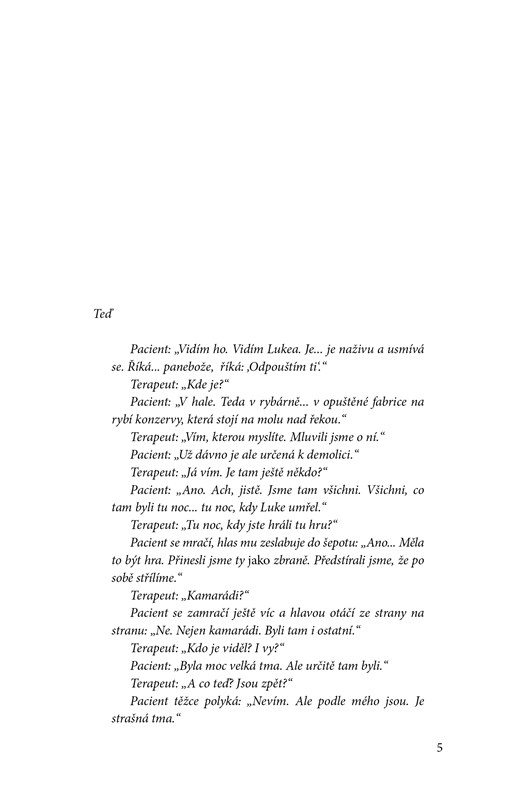 Rachel zase pořád netuší, jak je možné, že se nesmyslná pubertální hra zvrhla ve hru se smrtí. Neví, kdo jí vyměnil airsoftovou pistoli za skutečnou zbraň. Vybavuje se jí jen vzpomínka na nevlastního bratra Lukea, kterému se na hrudi zvětšuje krvavá skvrna...