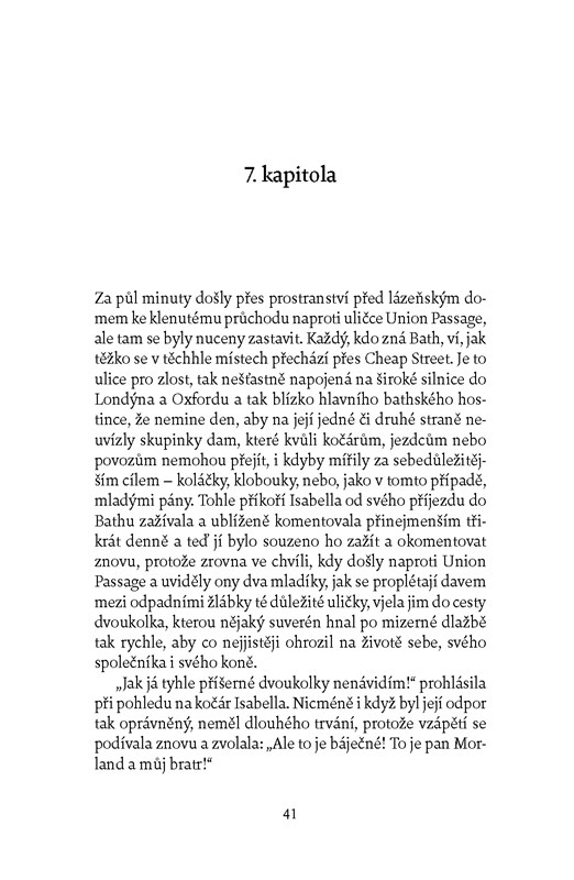 Román Jane Austenové vypráví o sedmnáctileté dívce Catherine Morlandové, která je v lázeňském městečku Bath poprvé uvedena do společnosti. Na plese se seznámí s okouzlujícím panem Tilneym. Avšak mladá dívka si mezi plesy, procházkami a společenským událostmi najde čas na čtení gotických hororových románů, které ji hluboce ovlivní. A tak když se jako host dostane do tajemného starého domu, promítá si do něj všechny děsivé příběhy z knih, které četla.