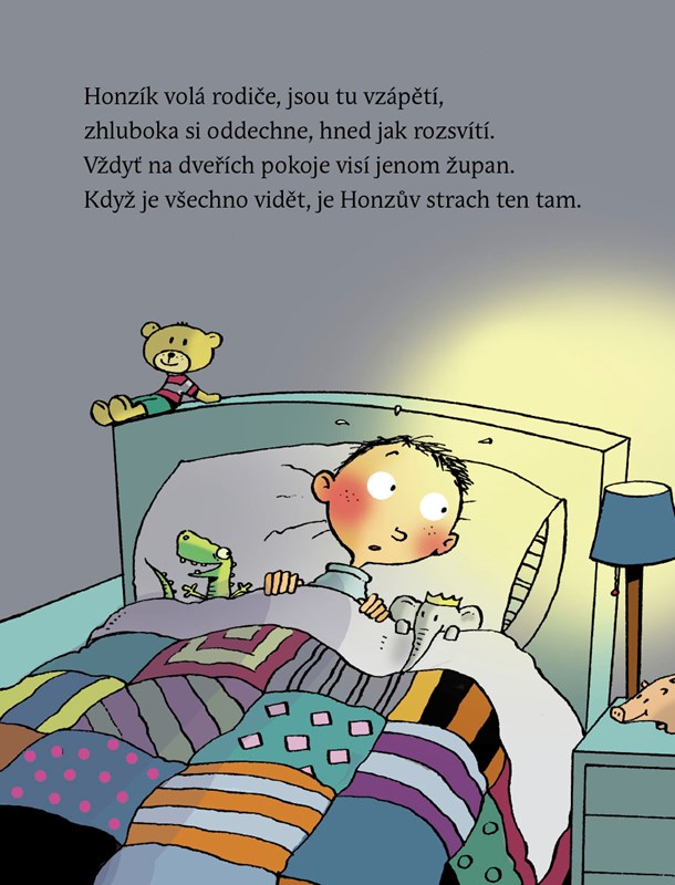 Malý Honzík je veselý kluk. Přes den je samý úsměv a šprým, večer ho ale dobrá nálada opouští. Honzík se totiž bojí tmy, stínů a strašidel, která jisto jistě číhají úplně všude. Když mu babička navrhne, aby spolu potmě prozkoumali celý dům, vůbec se mu nechce. Nakonec ale nelituje. Přijde totiž na to, že se není čeho bát!