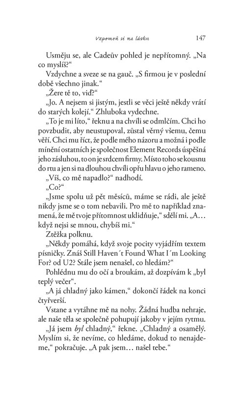 U romantické večeře se svým snoubencem Ryanem si Kailey Crane uvědomí, jaké neskutečné štěstí má. Skvělou práci novinářky v listu Herald, zasnoubená je s dokonalým mužem a večeří v jedné z nejfajnovějších restaurací v Seattlu. Při odchodu spatří před restaurací hubeného zarostlého bezdomovce. Chce mu dát krabici s jídlem, kterou si odnášeli domů, ale když se muži podívá do očí, jako by ji zasáhl blesk. Je to její životní láska, Cade McAllister, který před deset lety zmizel a Kailey z toho byla zničená. Chudák, kterého teď potkala na ulici, je jen stín dřívější lásky. Během následujících týdnů pomáhá Kailey Cadeovi dát život zase dohromady a před Ryanem to zpočátku tají. Při konfrontaci se starým vztahem si Kailey uvědomí, že se bude muset rozhodnout, co a koho vlastně chce.