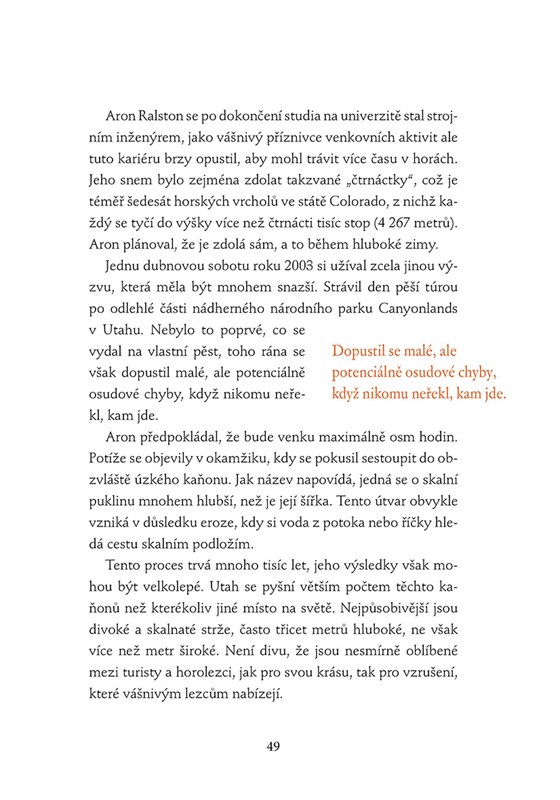 Tato kniha odhaluje neuvěřitelné příběhy odvážlivců, kteří se rozhodli přežít za každou cenu. Dočtete se o klasických dobrodružstvích, jako byla slavná Shackletonova výprava na Antarktidu, ale i o novodobějších lidských osudech, které inspirovaly populární filmy jako 127 hodin nebo Ztracen v džungli. Pro všechny tyto statečné duše, vystupující na stránkách této knihy, je společným jmenovatelem nezlomná vůle využít každičkou špetku síly, odvahy a vytrvalosti k překonání extrémně nepříznivých podmínek. Publikace vám představí životní zkušenosti lidí, co se nezalekli nebezpečí, nevzdali se, aby mohli dosvědčit svůj jedinečný příběh.