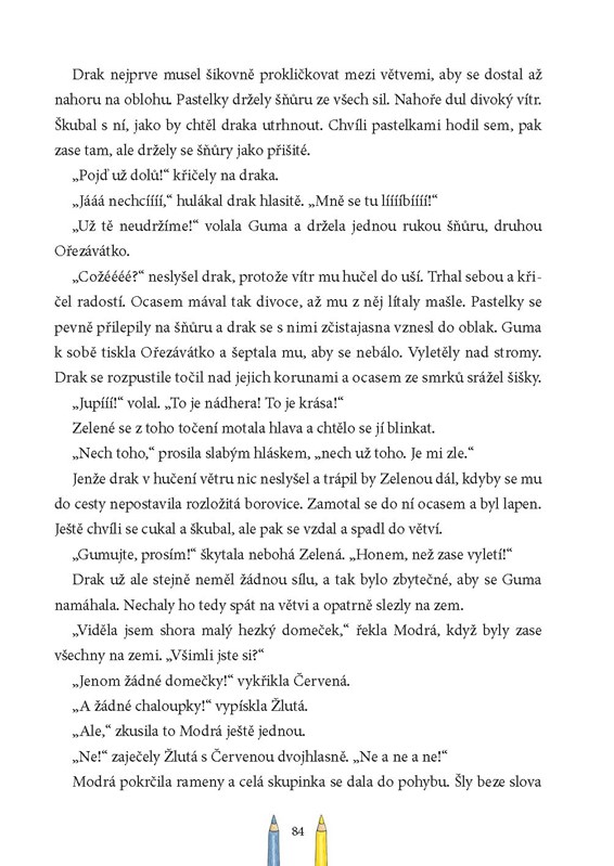 Tohle se nemělo stát! Pět pastelek zůstalo přes víkend zamčených ve škole, a to znamená jediné. Pěknou nudu! Kdyby se alespoň nehádaly o to, která z nich je nejhezčí. Pod vedením odvážné Černé se proto vydávají za sluníčkem, které jako jediné dokáže jejich při rozsoudit.