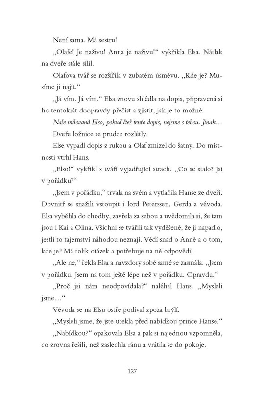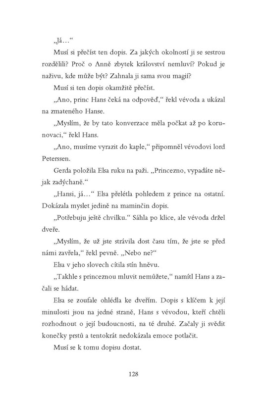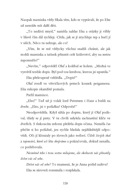 Po nečekané smrti svých rodičů se z Elsy stane jediný vládce Arendelle a vše magické začne vyplouvat na povrch. Elsa si začne vybavovat zlomky svého dětství, na něž už dávno zapomněla… Střípky a úlomky, které dohromady skládají obrázek něčím povědomé dívky. Elsa se odhodlaně vrhne do dobrodružství, jež má vyplnit chybějící části jejího života, a vydá se přes celé království, aby odvrátila děsivou kletbu… a nalezla další princeznu Arendelle.