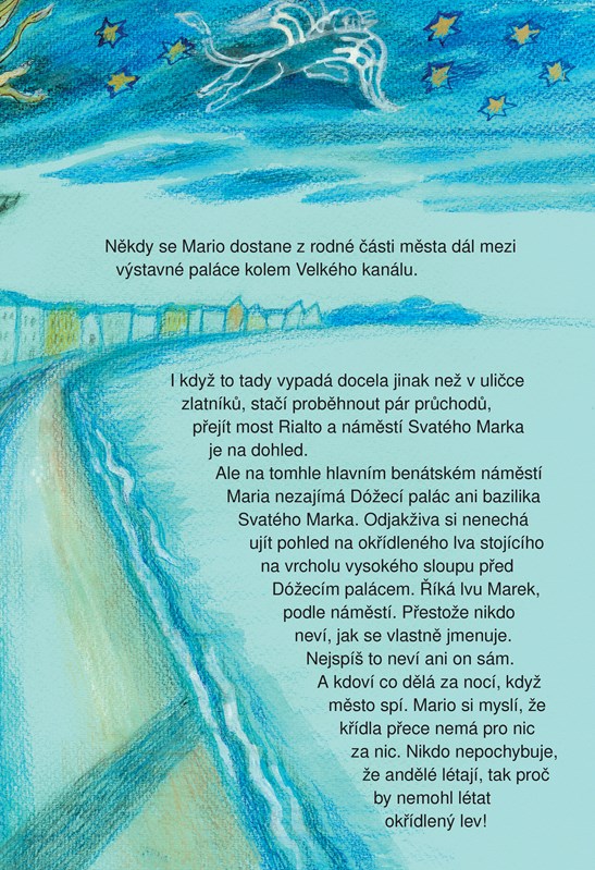 V době, kdy Benátky jsou rušným obchodním přístavem, Mariovi učaruje socha okřídleného lva stojícího na sloupu na náměstí Svatého Marka. Kdykoli kráčí kolem, obdivně hledí na vznešený benátský symbol, a přemýšlí, co asi dělá lev v noci. Jistě létá, když má křídla! Jednoho večera lev opravdu přistane u chlapcovy postele a nabídne mu, aby se s ním proletěl. A tak začnou podivuhodné výlety Maria a lva Marka. Jsou snem, nebo skutečností?