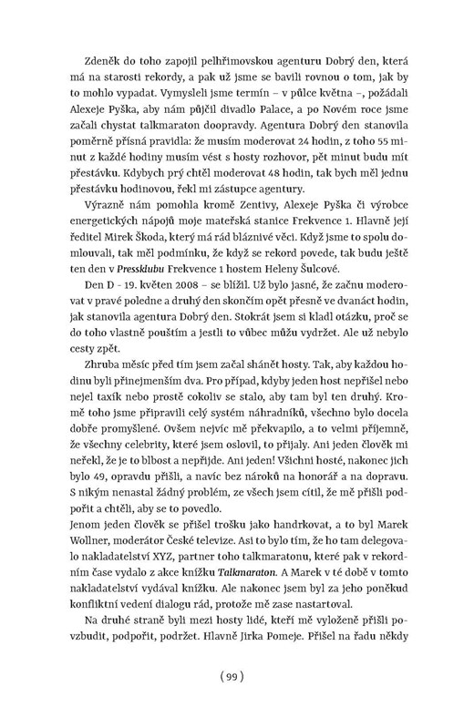 „Před lety jsem slyšela Luboše Veselého zpívat v rádiu country, a jeho hlas se mi líbil. Později jsem stejný hlas slyšela v rádiu. Nezpíval, ale kohosi zpovídal. A zase se mi líbil. Tehdy jsem i pochopila proč: Jako kdysi věděl, o čem zpívá, tak teď zase věděl, o čem mluví. Není mnoho moderátorů, kteří pobaví a zaujmou jak posluchače a zpovídané, tak i sebe. A díky psaní této knihy jsem si Xaverův hlas i osobnost velmi užila.“ – Marie Formáčková