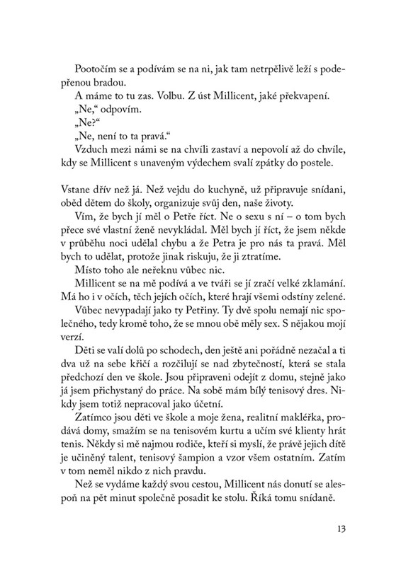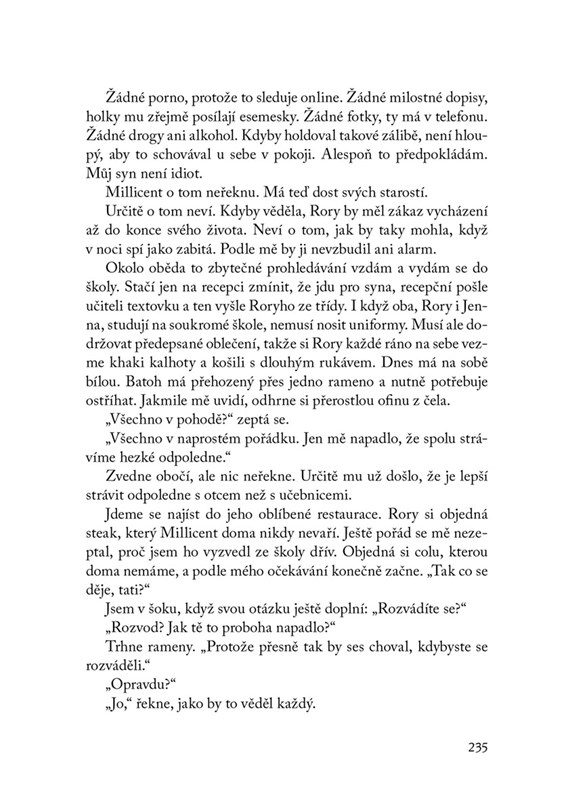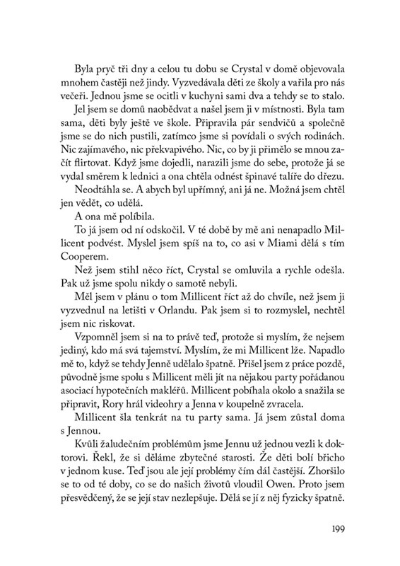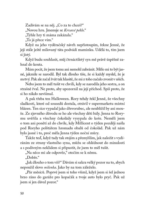 Zatímco celé město sleduje řádění sériového vraha, my střežíme naše tajemství. Jsme sousedé, které rádi pozvete na večeři. Protože nás dobře neznáte. Vlastně nás neznají ani naše děti. Ale co když neznáme ani jeden druhého? Jsme příliš dokonalý pár na to, abychom mohli žít jeden bez druhého.