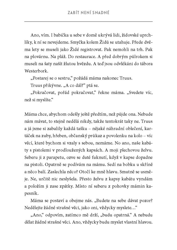 Freddie je pouhých čtrnáct let, když vypukne druhá světová válka. Už několik let ale ví, že se ve světě děje něco zlého. Její matka pracuje pro organizaci, která pomáhá Židům z celé Evropy utéct před hrozbou nacismu. A tak, když je Freddie spolu se svou starší sestrou posléze požádána, aby začaly spolupracovat s nizozemským odbojem, nezná jinou odpověď než okamžitý souhlas. Dívky dostanou velmi náročný úkol - lákají vysoce postavené nacisty do lesa na domnělé schůzky, tam jsou pak pohlaváři zabiti ostatními odbojáři. Nakonec sestry dostanou své vlastní pistole a jejich životy začnou ještě ostřeji oscilovat mezi strachem a odvahou, pochybnostmi a hrdostí. Oceňovaná nizozemská spisovatelka Wilma Geldofová zpracovala ve svém románu osudy nejmladší odbojářky své země, Freddie Oversteegenové.