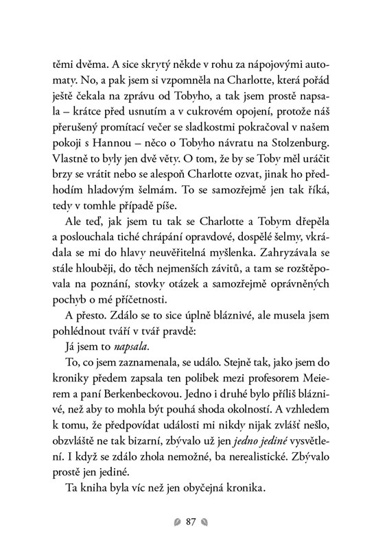 Když Emma při úklidu knihovny narazí na omšelý zápisník s potrhanými rohy, má za to, že objevila starou školní kroniku. Ukáže se však, že tahle kniha funguje právě naopak: Vše, co se do ní zapíše, se stane skutečností. Emma si umane, že svůj život i životy ostatních studentů internátní školy na zámku Stolzenburg s pomocí magické knihy trochu vylepší. Brzy však zjistí, že ne všechno se odehraje tak, jak si představovala…