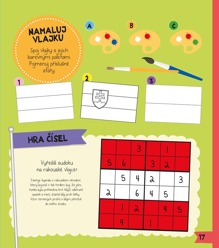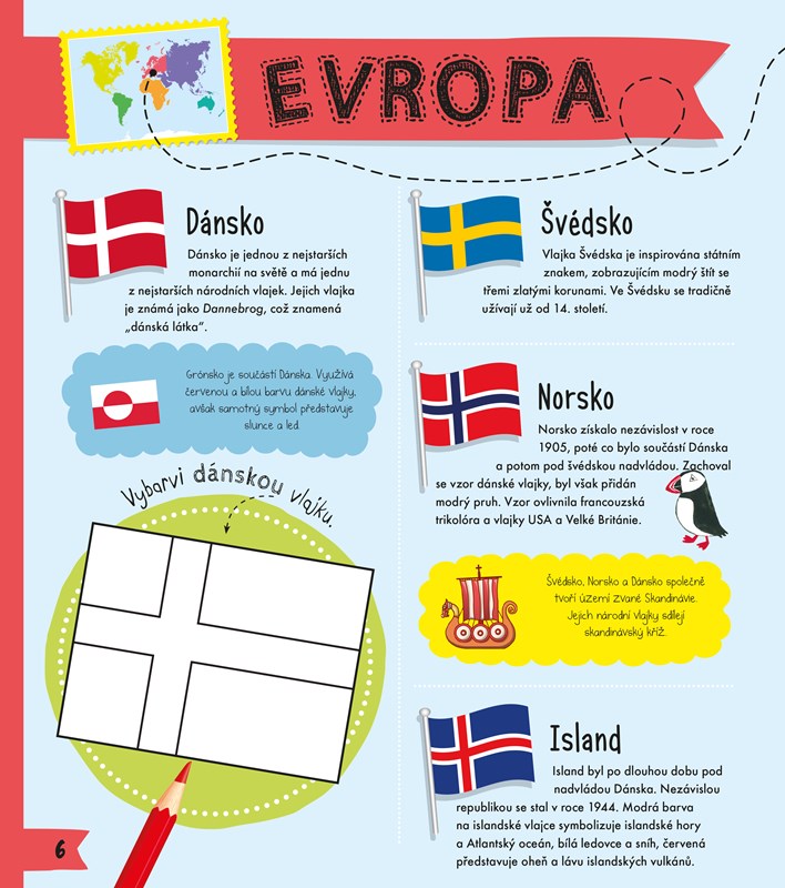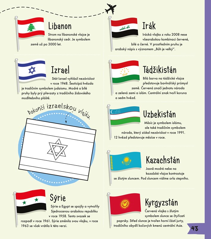 Tato knížka plná aktivit obsahuje fascinující údaje o vlajkách a zemích z celého světa. Nově nabyté znalosti si budeš moct ověřit v různých kvízech, hádankách a dalších cvičeních, které tě zabaví na dlouhé hodiny. Vydej se na výlet za poznáním vlajek a praporů!