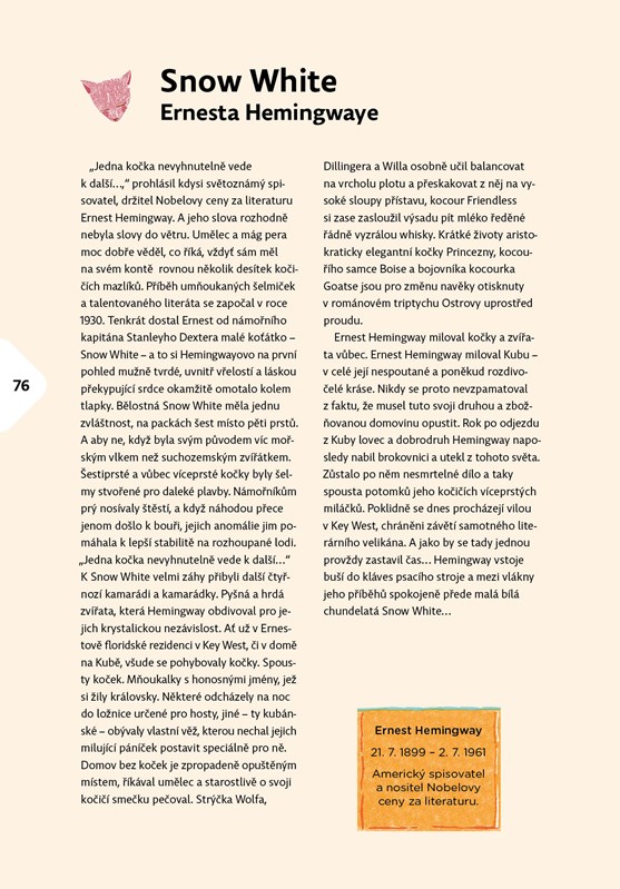 „Mami, pořiďme si psa nebo kočku,“ neexistuje rodič, který by nemusel čelit podobnému přání svých ratolestí. Nejen děti touží po živém mazlíčkovi, ale i význační umělci, panovníci, vojevůdci napříč historií chtěli mít svá zvířátka, která milovali. A bylo jedno, jestli šlo o živočichochy úplně obyčejné nebo exotické. Zvířata totiž nejsou jen němé tváře na pohlazení, dokážou inspirovat umělce i vědce, nebo statečně zachraňovat lidské životy během válečných konfliktů či krizových situací. Nevěříte? 45 příběhů o zvířátkách slavných a odvážných, stejně jako o miláčcích proslulých osobností vás jistě přesvědčí. Texty plné zajímavých informací doplňují ilustrace od známých českých i slovenských výtvarníků a výtvarnic.