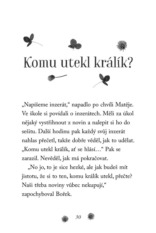 Sourozenci Anetka s Matějem a jejich kamarád Bořek objeví ve křoví u domu vystrašeného králíka. Hned je napadne, že jde o domácího mazlíčka, který někomu utekl. Snaží se majitele na sídlišti najít, ale bez úspěchu. Když ušáka zahlédne Matějův tatínek, vysvětlí dětem proč. Není to králík, ale divoký zajíc!