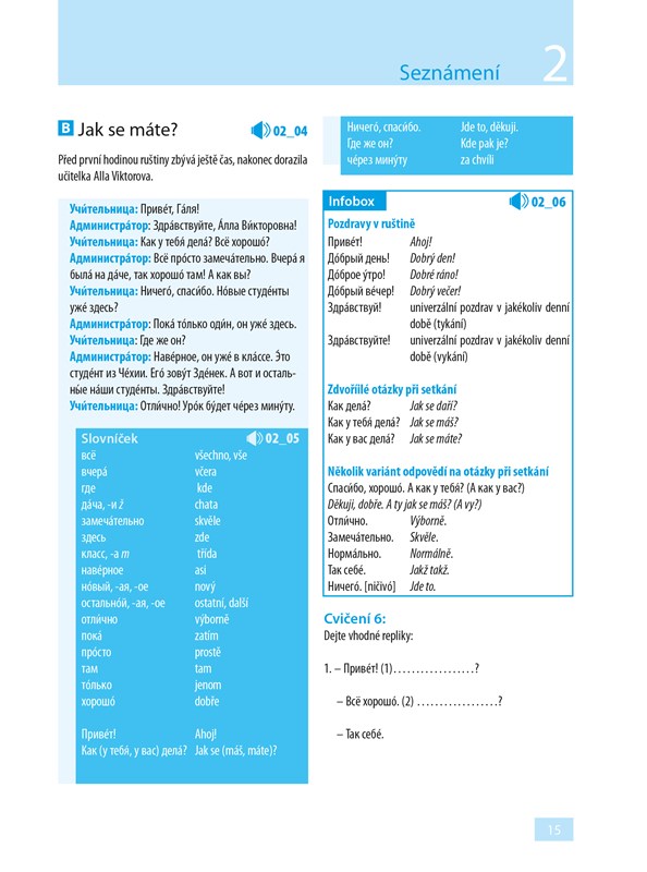 Na audionahrávce, která je zdarma ke stažení na stránkách nakladatelství, najdete nahrávky dialogů rodilých mluvčích. Můžete jen tak poslouchat nebo přeříkávat text spolu s nimi. Jednoduchou metodou získáte cit pro nový jazyk, naučíte se správně vyslovovat a rozumět rodilým Rusům.