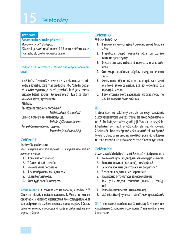 Ve 24 lekcích se naučíte základní gramatiku a osvojíte si slovní zásobu potřebnou v běžné komunikaci. Díky rozmanitým textům přibližujícím obvyklé situace (na nádraží, v hotelu, na nákupu, u lékaře, v bance, s přáteli) budete vědět, jak v dané chvíli reagovat. V infoboxech pak budete průběžně seznamováni s jazykovými zvláštnostmi, místními reáliemi a způsobem života v Rusku. Samozřejmostí jsou také rozmanitá cvičení, díky kterým si lehce zopakujete to, co jste se již naučili.