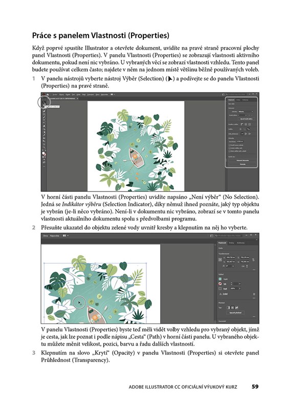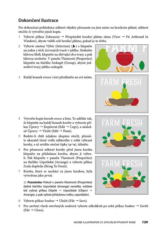 Kniha obsahuje prvky jak českého, tak anglického uživatelského rozhraní Adobe Illustratoru.