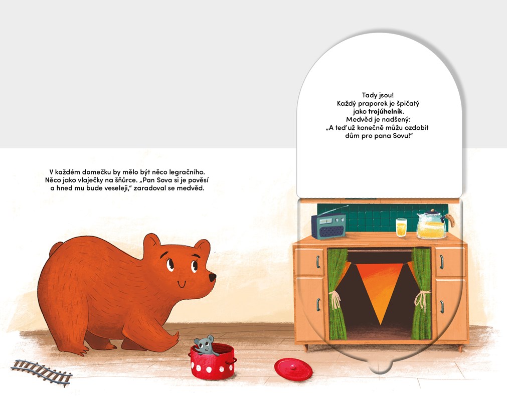 Pan Sova je smutný. Má plné bříško a teplý pelíšek, ale nemá čím vyzdobit svůj dům. Naštěstí je tu medvěd Béďa, který svému příteli rád pomůže! Poznávej tvary s medvědem Béďou! Nahlížej pod okénka a prohlížej si obrázky plné vtipných detailů.