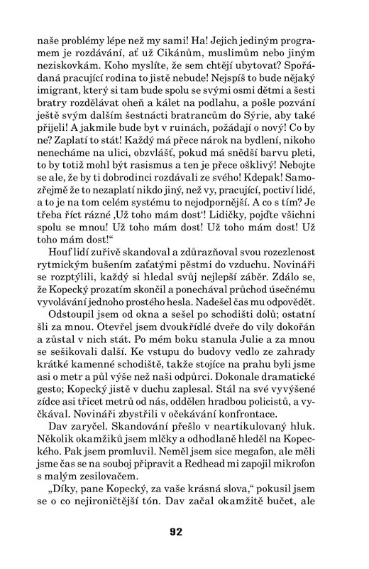 Terorista vypráví příběh mladého muže sympatizujícího s extrémní pravicí v současné České republice. Hlavní anti-hrdina je frustrován stavem společnosti a tím, co vnímá jako úpadek civilizace pod taktovkou levicových liberálů a neziskových organizací. Pod vlivem svého politického guru se rozhodne osobně angažovat v boji a vypracuje důmyslný dlouhodobý plán. Hodlá vstoupit do jedné z významných neziskovek, kterou vnímá jako původce zla, získat si důvěru ostatních členů, a nakonec jménem oné neziskovky vykonat teroristický útok. Hodlá tím vyburcovat společnost a poukázat na domnělá nebezpečí levicového aktivismu. Kniha využívá autorovy znalosti prostředí politického extremismu. Jak se děj hýbe kupředu a hlavní postava se blíží k vykonání atentátu, příběh získává rysy thrilleru a detektivního románu – ovšem z pohledu zločince.