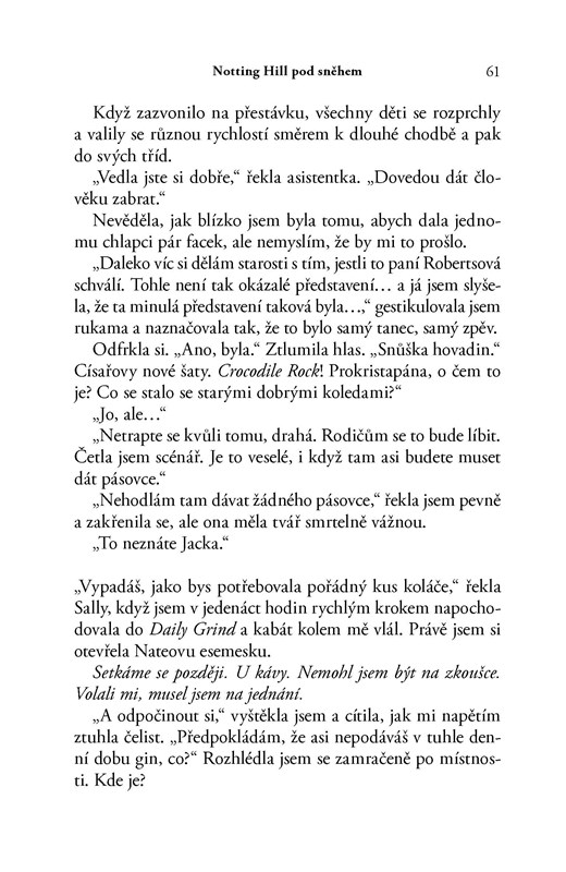 Kniha se odehrává v nejromantičtější čtvrti Londýna Notting Hill v období Vánoc. Jules Wake čtenářům nabízí stejně okouzlující atmosféru jako kultovní film Notting Hill s Julií Roberts a Hughem Grantem v hlavních rolích. Zasněžený Londýn je pro lásku jako stvořený.