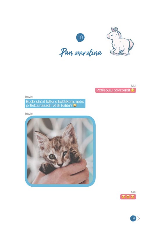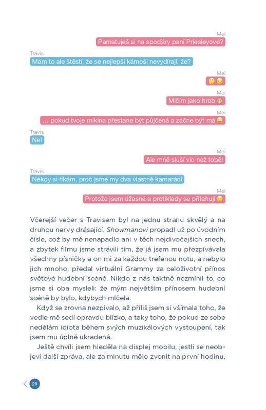 Když se o ni Travis konečně začne zajímat, je to v tu nejméně vhodnou chvíli. Mei je nemocná a polibek, o kterém sní od doby, co si přestala hrát s panenkami, musí ještě chvíli počkat. Zatím můžou randit tak maximálně přes messenger. Bude ale skutečné rande nakonec lepší než to virtuální? A dočká se líbání s motýlky v břiše, ohňostrojem a zemětřesením?