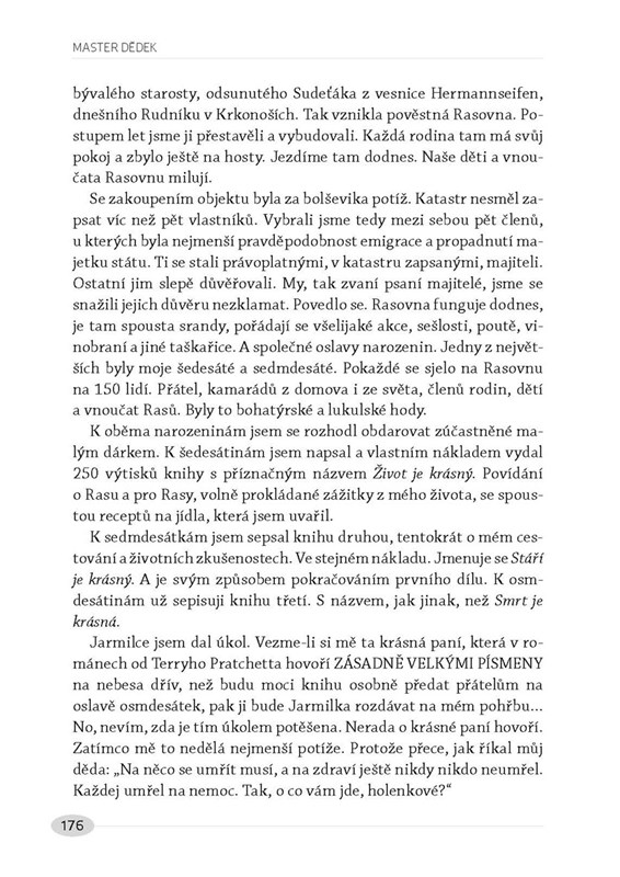 Kniha vzpomínek a příběhů z „brožovaného“ života úspěšného architekta a účastníka televizní soutěže MaterChef Česko, jemuž nikdo neřekne jinak než Dědek.