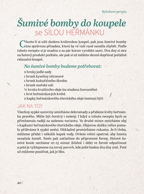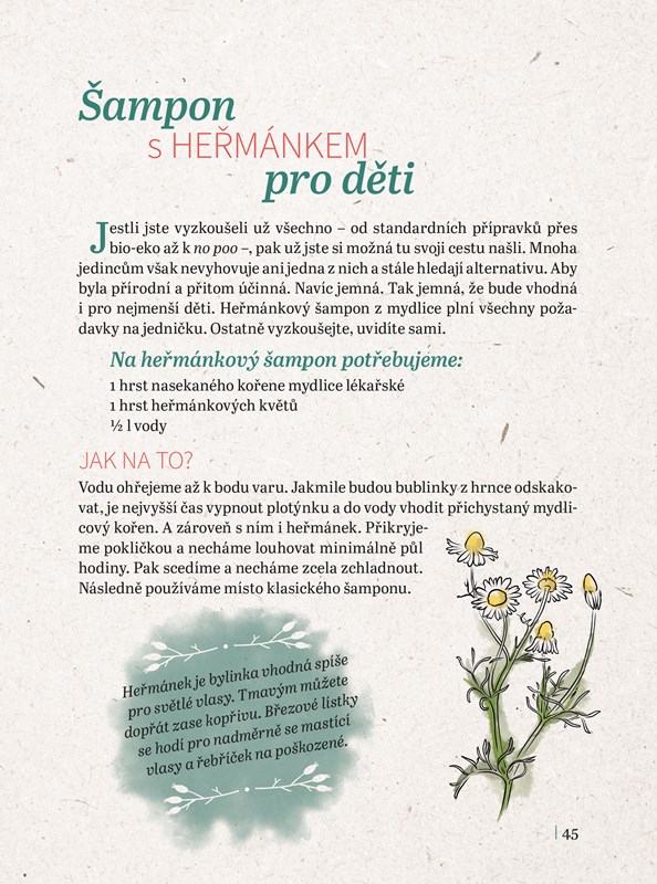 V knize najdete recepty na bylinkové přípravky, které se vám mohou hodit v každodenním životě. Třeba při úklidu domácnosti nebo při pěstění pokožky a vlasů. Při výrobě těchto produktů není potřeba shánět exotické ingredience a nakupovat drahé suroviny. Vše běžně nakoupíte v e-shopech, lékárnách nebo prodejnách se zdravou výživou.