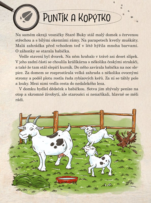 Pokud tě baví číst dobrodružné příběhy, máš rád zvířátka a jednou by ses chtěl/a stát třeba detektivem, vydej se prostřednictvím této knížky, spolu s chytrým lišákem Viktorem, po stopách zatoulaných kozlíků Puntíka a Kopýtka.