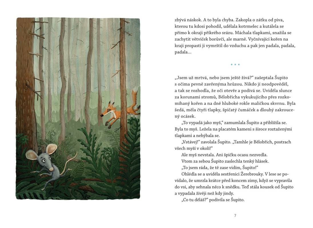 Dobrodružství myšky Šupito začíná dramaticky. Myška utíká cestou necestou před lišákem, který ji pronásleduje, a zřítí se z příkrého srázu do propasti. Když se Šupito probudí, uvidí před sebou malou rozpláclou myšku. Ta myška se nehýbá a – vždyť je to ona! A kolemjdoucí sestřenice Žerebrouky, která se s ní vesele pouští do řeči, přece loni umrzla v lese! Co se to jen děje? Čtenáře čeká nejedno překvapení, protože – myši patří do nebe, ale jenom na skok!