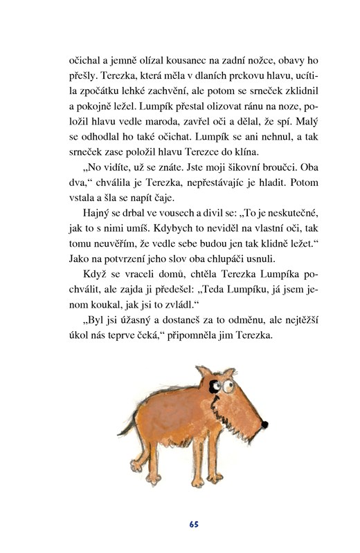 Jedenáctiletá Terezka žije s rodiči na samotě u lesa. Náhodou se jí podaří objevit velké tajemství zvířat. Spolu s pejskem Lumpíkem si najdou nové kamarády, zajdu, srnečka i lesního ducha, a tahle zvláštní partička společně prožije spoustu dobrodružství. Srnečkovi najdou ztracenou mámu, hajnému pomůžou chytit pytláka, ve skalách objeví ukrytý lup a jednomu spolužákovi zabrání spáchat hroznou věc.