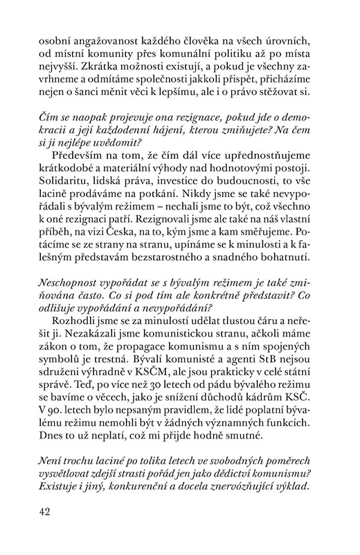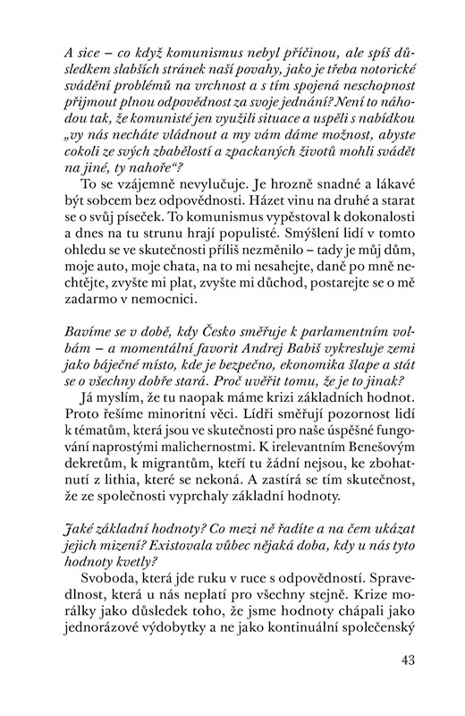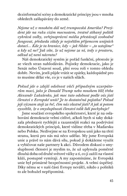 Rozhovor s ekonomkou Danuší Nerudovou, rektorkou brněnské Mendelovy univerzity, členkou KoroNervu a velmi aktivní osobností českého veřejného života, se týká nejen ekonomických témat, jako jsou daně a důchody, o nichž D. Nerudová dovede zasvěceně a přitom srozumitelně vyprávět, ale i otázek sociálních, jako je postavení ženy v české společnosti. D. Nerudová nedávno oznámila, že zvažuje prezidentskou kandidaturu na rok 2023. Rozhovor vede Jiří Nádoba, novinář z týdeníku Respekt. Předmluvu ke knize napsal Petr Pithart.