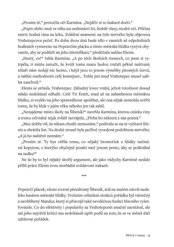 Doprava poháněná parními ďasy. Nepolapitelný vrah, který se specializuje na kolegy z branže. Magická čtvrť ozubených kol, ocelových květů a podezřelých výtrysků páry. Úzká čtvrť plná studentských spolků, ohyzdných chrličů a skrýší uprchlých chimér. A samozřejmě kuchař, který býval travičem. To vše a mnohem víc skýtá jedinečný kolorit Tir Erath, města proslulého svou Univerzitou.