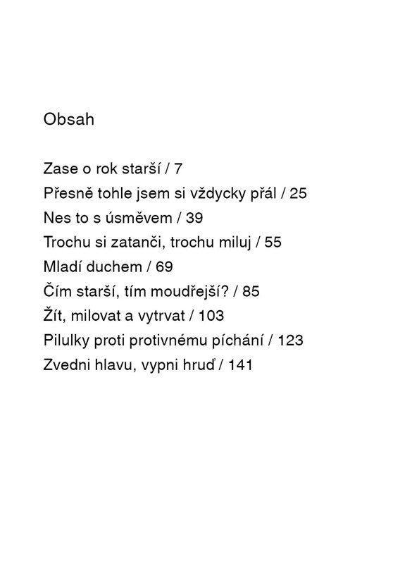 Sbírka vtipných citátů a bonmotů určená všem, které začínají přibývající svíčky na narozeninovém dortu poněkud znervózňovat. Není důvod k panice, s touto knížkou vás ani vaše blízké padesátiny nezaskočí!
