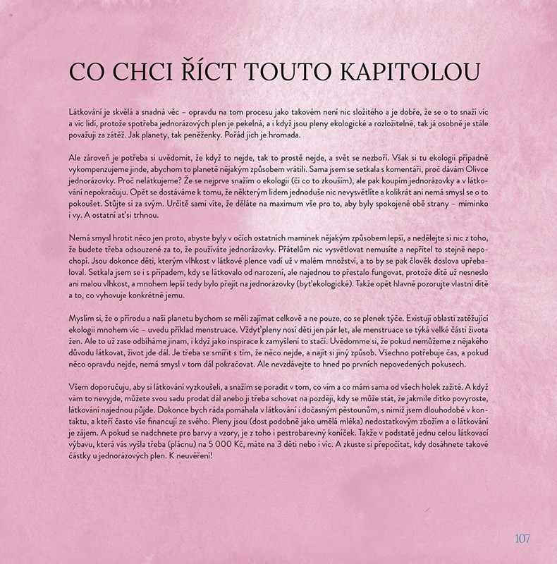 Tato kniha je laskavým pohlazením nejen pro ženy, které mateřství teprve čeká, ale také přátelským povzbuzením a podnětnou inspirací pro mámy, které už na svoji cestu mateřstvím vykročily, ale nejsou si jisté, zda se vydaly správným směrem.