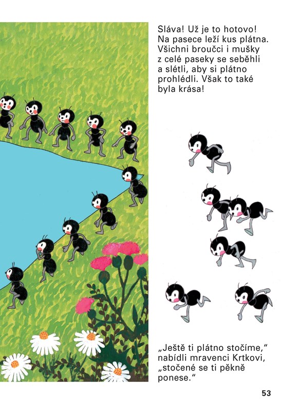 Jedna z nejznámějších a nejpůvabnějších knížek o tom, jak se dílo podaří, když se všichni spojí a každý dělá, co umí. Krtek zatouží po krásných modrých kalhotkách, sám ale neumí ani tkát, ani stříhat, šít nebo barvit látku. Poprosí tedy o pomoc své kamarády – raka, rákosníčka, žabku, čápa, ježka, pavoučky a mravenečky. Ti mu rádi pomohou, a Krtek se nakonec může radovat z nových kalhotek s velkými kapsami, kam může schovat své malé poklady.
