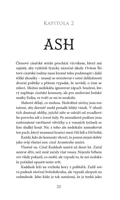V říši Aramtesh mají vůně moc. Sedmnáctiletá Rakel má úžasný talent pro výrobu parfémů, ale ani její mimořádné schopnosti nestačí, aby vyléčila svého umírajícího otce. Zemí se šíří epidemie, která se nevyhýbá chudým ani mocným. Rakel opouští svou vesnici v poušti a odchází do města Aphana v zoufalé naději, že otce zachrání. Namísto toho se stane otrokyní nejvyšší kněžky chrámu, který skrývá mnohá tajemství – záhadné starobylé příběhy, ale i příběhy z Rakeliny minulosti. Královský strážce Ash přísahal, že bude chránit korunního prince Nisaie, a princ na oplátku ochrání jeho tím, že utají Ashovu skutečnou identitu. Jedné osudné noci se drahocenné vonné květy v chrámu ocitnou v plamenech a princ Nisai je otráven. Rakel si uprostřed všeho zmatku uvědomí, že hlavní podezřelou je ona – a že ona jediná ví, kde najít protijed. A i ta nejmenší šance k nalezení léku Ashovi stačí, aby pro ni riskoval, i kdyby to mělo znamenat porušit rozkaz, spojit se s uprchlicí a dát se na útěk. Než jed plně zapůsobí, nesourodá dvojice musí spěchat napříč říší, aby zachránili prince, sami sebe a všechno, co je jim drahé.