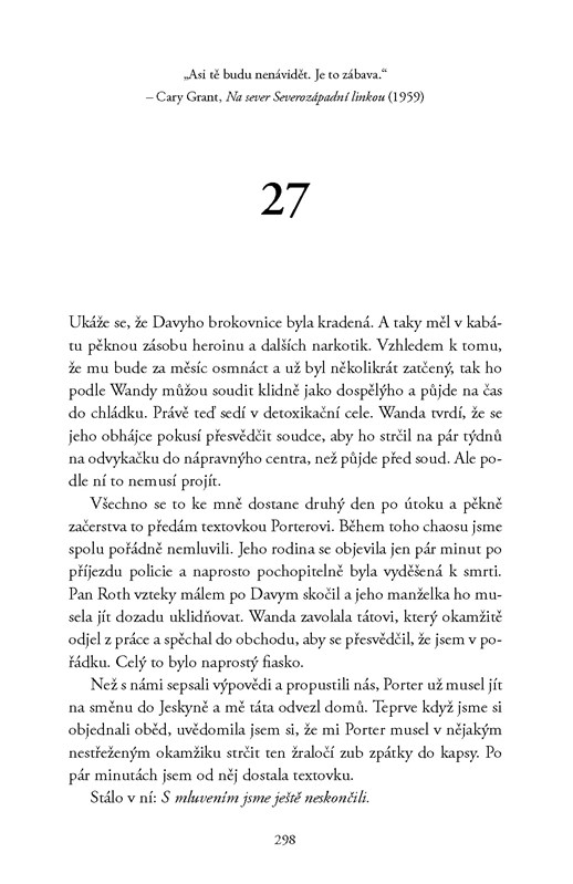 Bailey se ale bojí, že se z Alexe vyklube úchyl nebo podivín, a tak mu neřekne, že se do "jeho" města nastěhovala. Nebo že sehnala brigádu v místním turisty vyhledávaném muzeu. Nebo že ji každý den dovádí k šílenství muzejní sekuriťák Porter Roth, který je sice k sežrání, ale taky jejím novým nepřítelem na život a na smrt. Časem je navíc všechno komplikovanější a Bailey začíná objevovat tu tenkou hranici mezi nenávistí, láskou a čímkoli, co zrovna začíná cítit k Porterovi. Bailey si tak musí vybrat, jestli se držet své online fantazie, Alexe, nebo zariskovat a přijmout nedokonalou realitu, Portera. Volba je to zároveň jednodušší i komplikovanější, než si uvědomuje - Porter Roth má totiž tajemství: to one je Alex... víceméně.