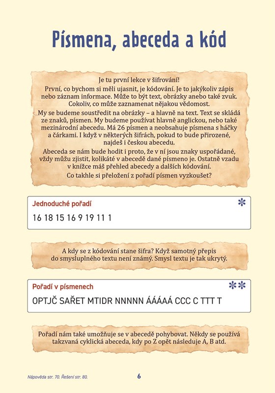 V závěru knihy najdeme nápovědy i řešení a nechybí zde ani praktická přehledová tabulka k šifrování.