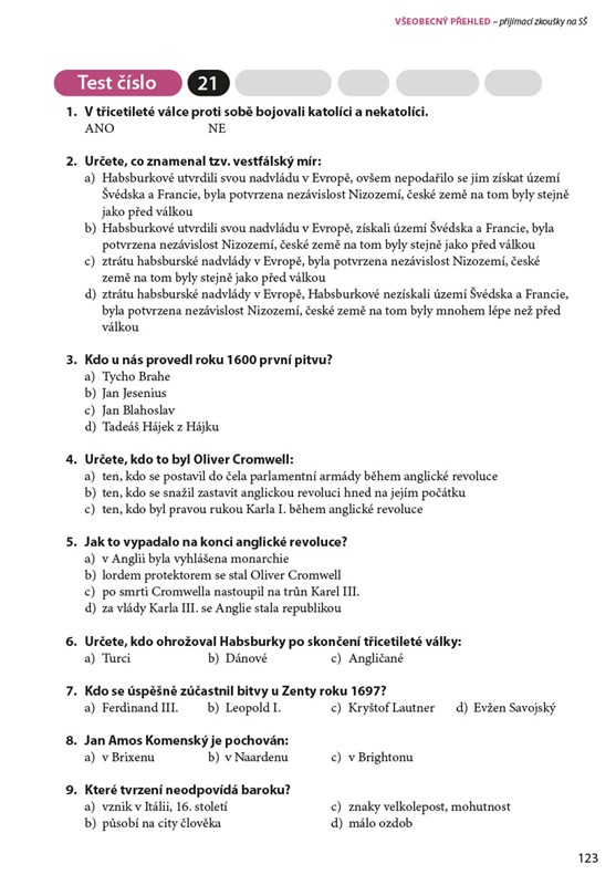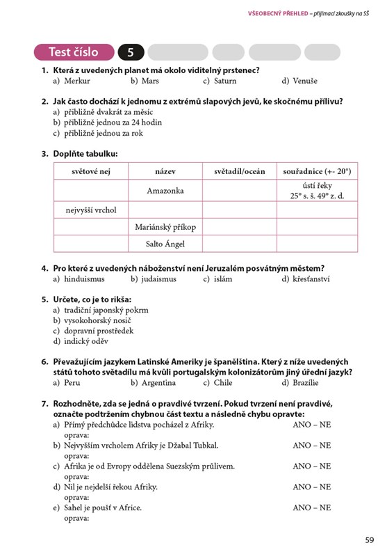 Publikace, kterou jsme připravili, obsahuje testy z dějepisu, přírodopisu, občanské výchovy a zeměpisu, a nabízí tak možnost zjistit, co dobře umíte a kde je třeba přidat. Jednotlivé otázky jsou koncipovány jako otevřené, uzavřené či obrázkové. Správná řešení najdete v klíči na konci publikace.