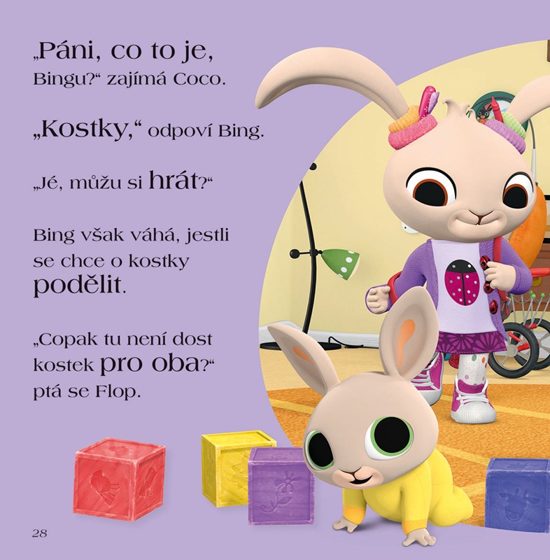 Bing a jeho nerozluční kamarádi jsou tu s dalšími příhodami! Tentokrát si museli poradit s tím, jak se rozdělit o stavební kostky nebo jak pomocí autíček přesadit strom a naučili se vyfukovat bublifukové bubliny nebo uspořádat kamarádům dortovou oslavu. A na konci dne nastane čas popřát si dobrou noc a přichystat se do postýlky...