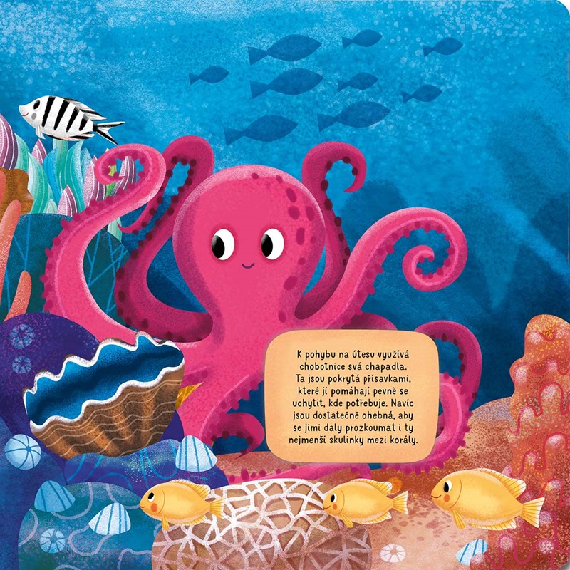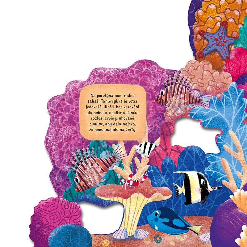 Barevné rybky, maličcí mořští koníci i šibalské chobotnice – ti všichni přebývají na korálových útesech. V teplých tropických vodách mají dostatek jídla a skuliny mezi korály jim nabízejí bezpečné úkryty. Ponoř se pod hladinu moře a vydej se prozkoumávat skrytá zákoutí korálového útesu. Mezerami mezi korály uvidíš, kam se který obyvatel útesu schoval.