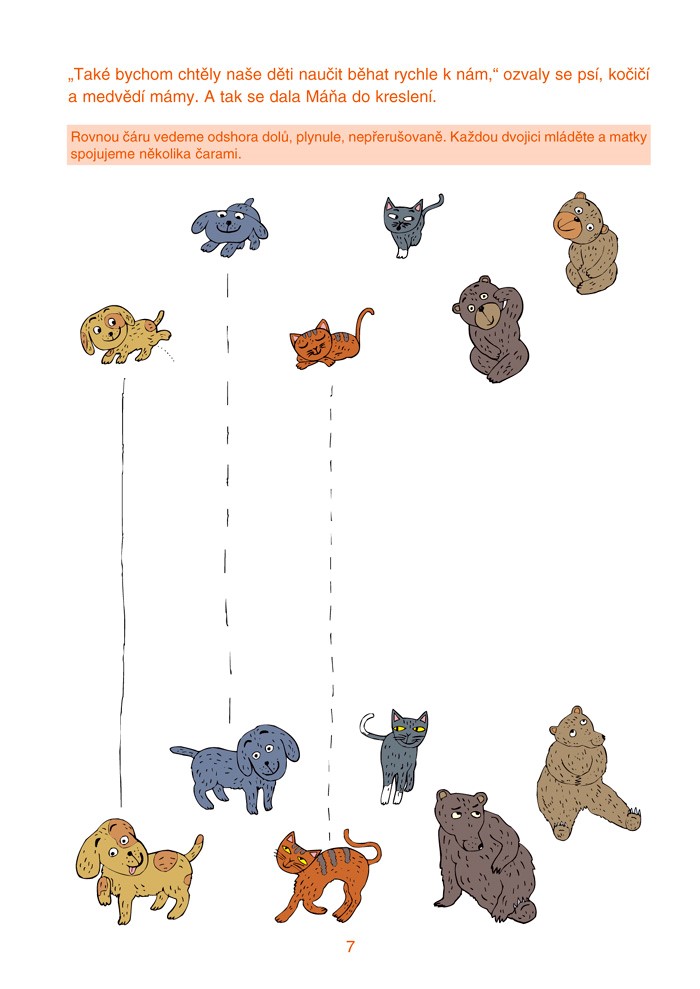 Proč se zabývat grafomotorikou, která se snad týká zejména psaní? Abychom se dověděli, jak je to s kresbou a psaním, jak se tato část jemné motoriky a také psychické funkce potřebné při kreslení a psaní vyvíjejí, kdy bychom měli uvažovat o tom, že naše dítě potřebuje nějakou podporu, přečteme si nejprve dopis, který dospělým napsala autorka námětu a celého souboru cvičení obsažených v knížce. Jiřina Bednářová zúročila odborné poznatky a svou dlouholetou praktickou zkušenost z práce s dětmi předškolního věku i s malými školáky. Její doporučení, týkající se nejen zásad při práci s touto knihou, ale také činností rozvíjejících jemnou motoriku, leváctví a praváctví, pracovních návyků při kreslení, tedy i správného držení psacího náčiní a jeho volby, jistě pomohou poznat, co které dítě potřebuje. Aby cvičení – kreslení probíhalo, jak má, protože dodržení metodického postupu má význam pro dosažení dobrého výsledku, jsou ještě navíc u každého cviku zvýrazněna doporučení, jak jej správně provádět. Když se na práci dobře připravíme, budeme se spolu s naším malým kreslířem radovat se Šmardovými pastelkami Boženkou a Máňou, s veselými zvířátky. Nakonec si ověříme, co se náš chlapec či holčička i pastelka Máňa naučili, a zjistíme, že se nikdo z nich nemusí schovávat v koutku, protože už umí kreslit a kreslí rád. Půjde mu proto jistě ve škole dobře nejen kreslení, ale i psaní.