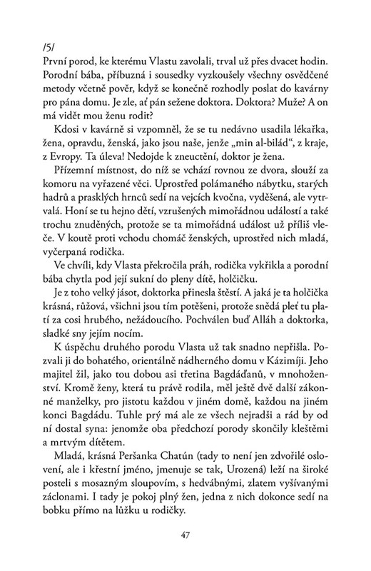 Literárním zpracováním osudu lékařky přezdívané „český Albert Schweitzer“ přiblížila Ilona Borská výjimečnou osobnost Vlasty Kálalové-Di Lottiové. Léčila, milovala, studovala, přednášela a cestovala s umanutou odvahou jít za svým snem. Její mimořádné nadání však bylo vykoupeno i nezměrným utrpením. Rodačka z Bernartic u Tábora, mladá nadaná absolventka lékařské fakulty, se ve dvacátých letech minulého století vydala sama do Orientu a založila v Bagdádu československou nemocnici. Jako žena-lékařka a navíc Evropanka se musela zpočátku potýkat s nedůvěrou místních, kteří často stále spoléhali na pověry a domácí léčitelství. Protože ale mluvila plynně arabsky, rychle si získala klientelu – především z řad žen, kterým do té doby kvalitní péče chyběla. Smyslem jejího života bylo pomáhat lidem. Přes osobní tragédii nikdy nezatrpkla a věnovala veškeré své síly těm, kteří to nejvíce potřebovali – trpícím.