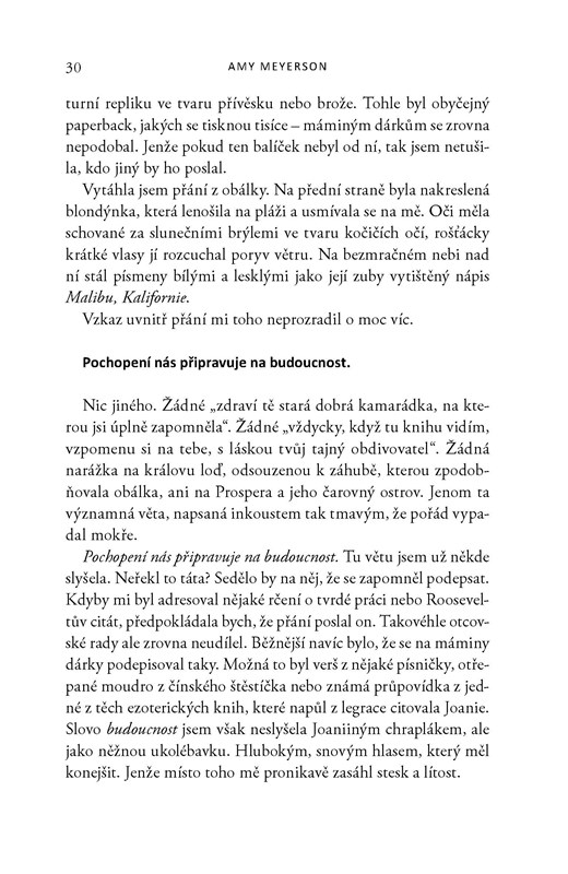 Miranda o něm nemá žádné zprávy, dokud se o šestnáct let později nedozví, že její strýček nedávno zemřel a zanechal jí neobvyklé dědictví – své knihkupectví, které je na pokraji bankrotu, a jednu poslední bojovku, na jejímž konci možná čeká odhalení rodinného tajemství…