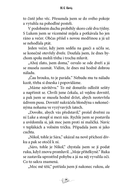 Znáte taky ten pocit, když máte k přečtení tolik skvělých nových knih, ale není dostatek času? A navíc vám ostatní neustále vyčítají, že pořád jen čtete? Pak jste na tom stejně jako Nikol. Té se daří s knihomolskými problémy relativně slušně vypořádat, než se objeví jeden o něco větší zádrhel. Jmenuje se Luke – neustále zmlácený spolužák jejího staršího bratra, který má snad nadlidský talent na zprotivení knihy. Nikol dokonce udělala nemyslitelné, udeřila ho knihou. Samozřejmě že pak přišla velká omluva… ta kniha si to vážně nezasloužila.