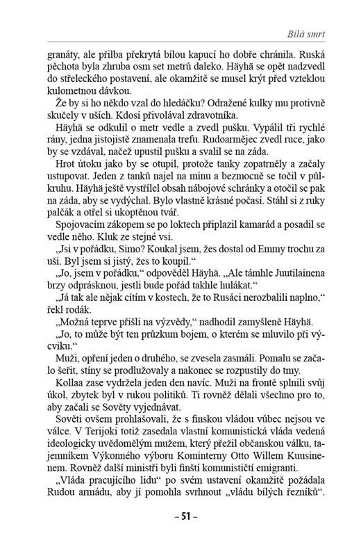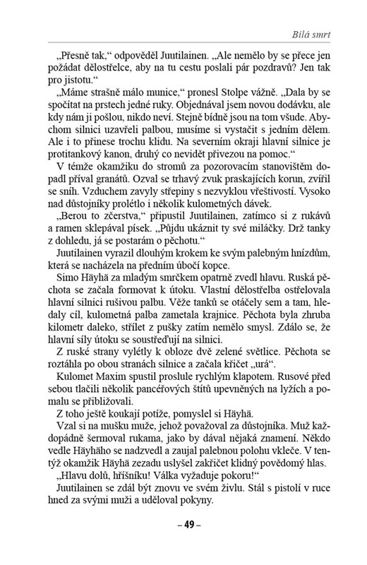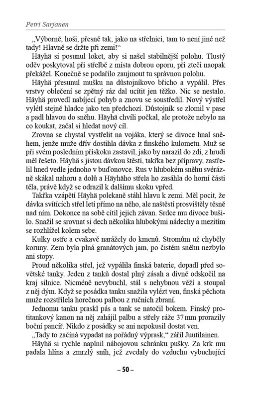 Kromě dramatických osudů finského odstřelovačského esa se kniha také dílem zabývá osudy dalších postav, majících významný podíl na tom, že se v klimaticky náročných bojových podmínkách podařilo s vynaložením nadlidského úsilí zastavit postup agresora, a zachovat tak nezávislost Finska.